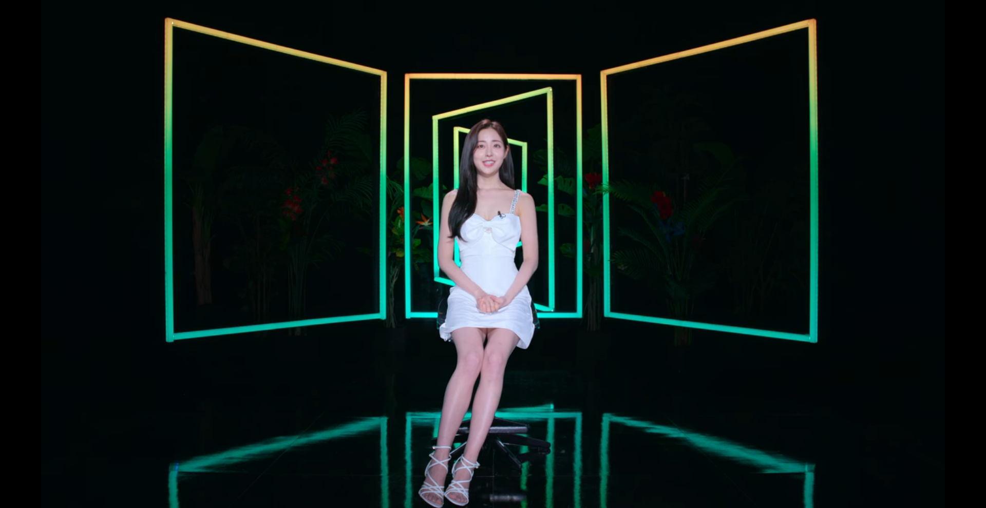 자기소개 장면에서는 가슴 부분에 큰 리본이 달린 새하얀 원피스를 입어 천사같은 모습을 보였습니다.