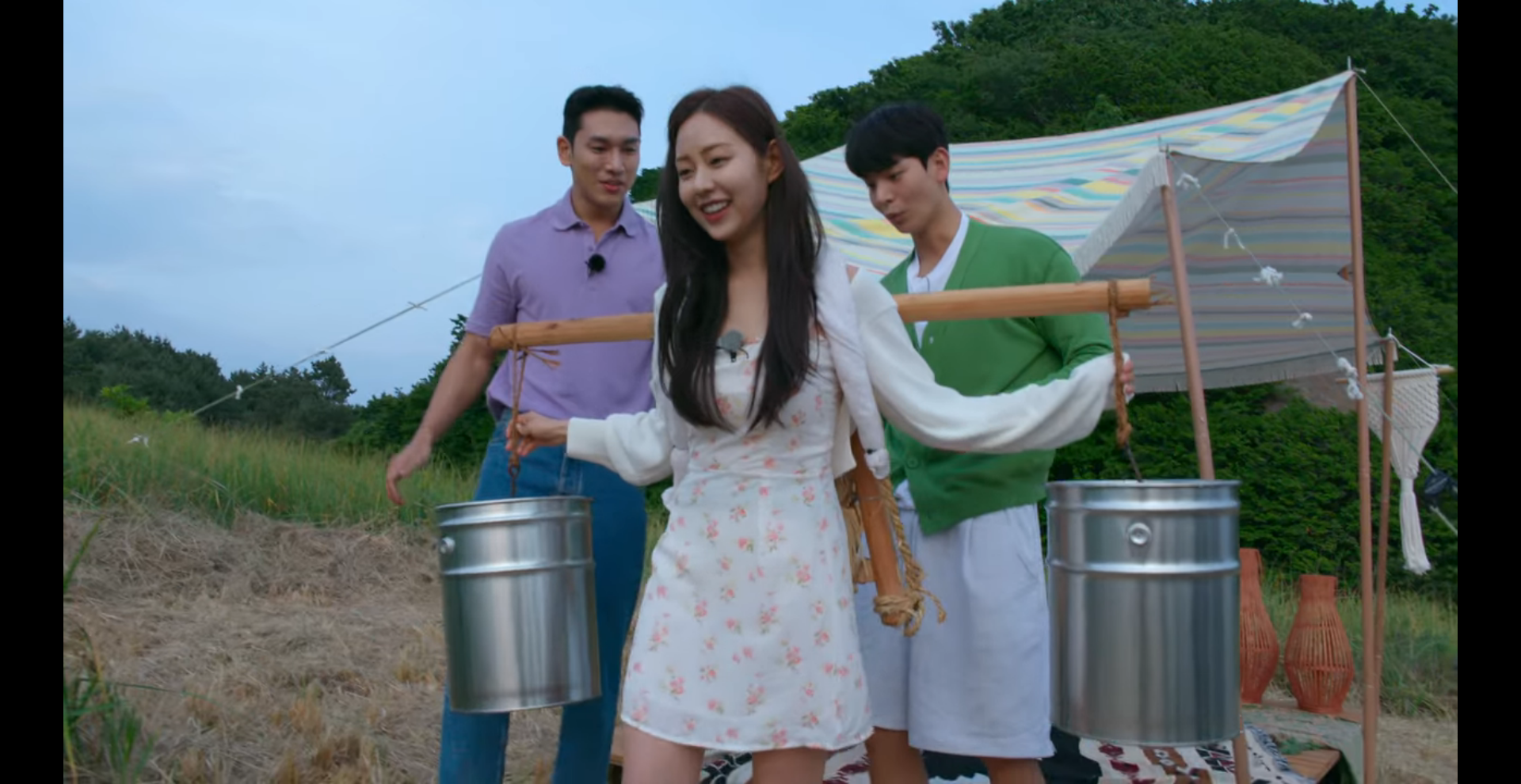 오후에 물 긷는 장면에서부터 저녁식사, 1차 첫인상 선택 장면까지 입고 있던 플로럴 패턴의 원피스는 미국 브랜드 '리포메이션'의 Ava Dress입니다.