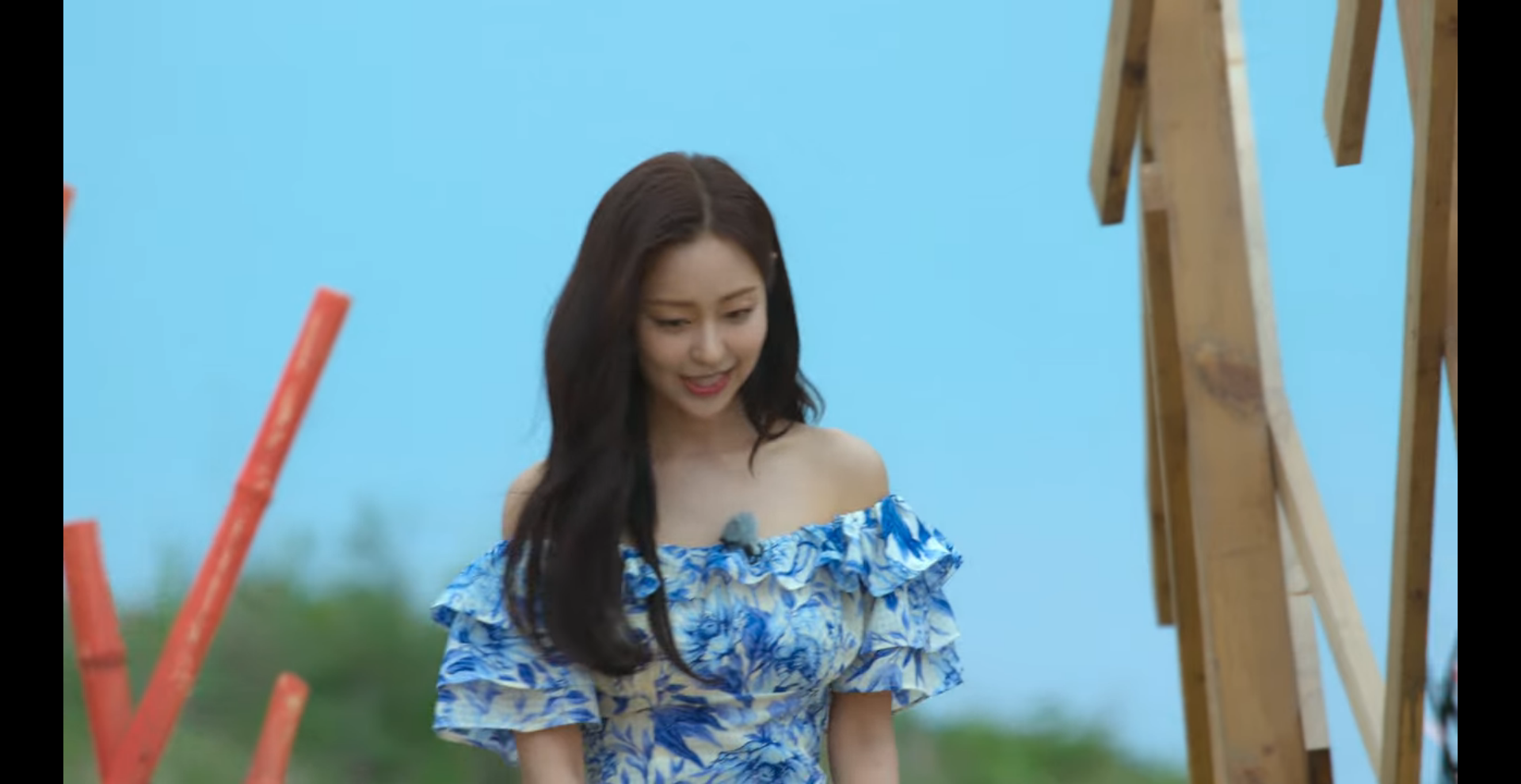 첫 등장 오프숄더 원피스