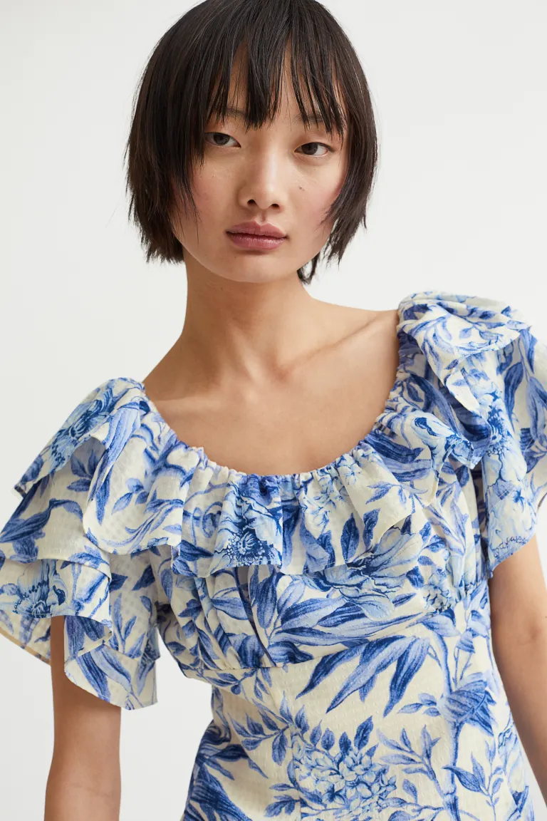 신슬기님 첫 등장 씬부터 청순하고 예쁜 외모로 모두의 감탄을 자아냈는데요, 이때 입고 등장한 하얀색 바탕의 파란색 플로럴 패턴 원피스, H&M 제품이라고 합니다.